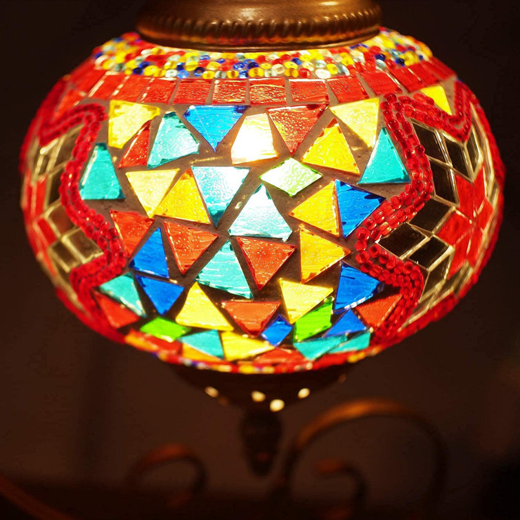 Bloomsbury Market Mosaic Table Lampstunning Handmade Moon Shape Turkish Moroccan Mosaic Glass Table Desk Bedside Lamp Light Bronze Base Unique Table Lamp Room Decoration Red Wayfair