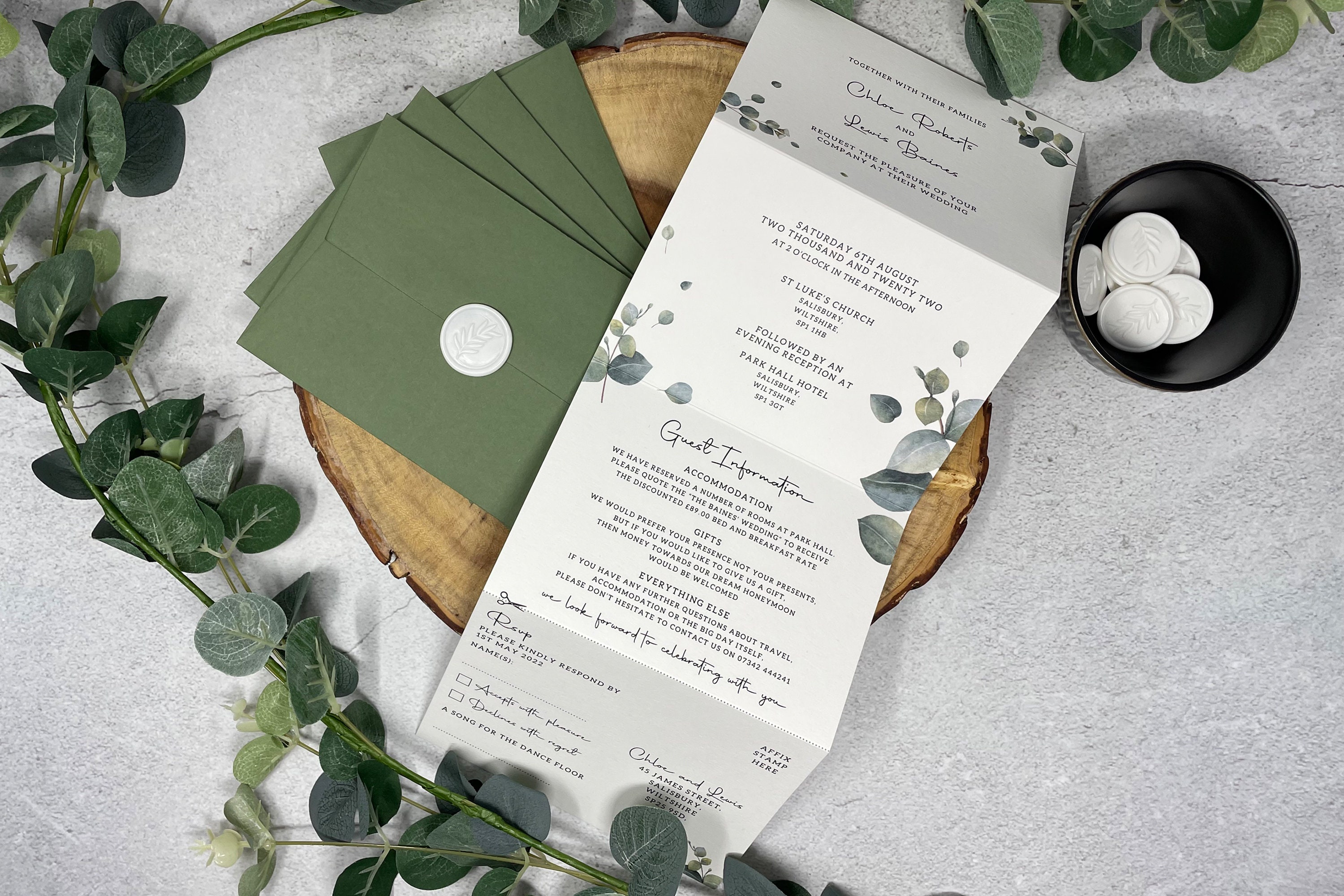 Wedding Invitations Eucalyptus Concertina Fold Wedding Etsy Uk